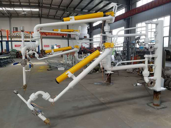 裝車鶴管可分為上裝裝車鶴管和下裝裝車鶴管,以前一般上裝裝車鶴管用的多,人站在平臺上面操作,不是很方便。現在下裝裝車鶴管解決了這個問題,不僅安全快速,而且使用方便。裝車鶴管的液下裝車是指裝車鶴管裝車時垂管(插入管)據罐車底部的高度不得大于200mm,這樣可減少物料噴濺揮發和靜電的產生。